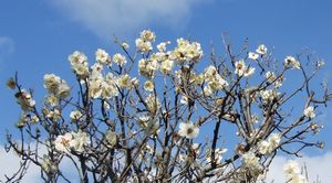 ニホンスイセン(ヒガンバナ科ユリ科に分類される場合もあります) 地中海沿岸原産の耐寒性多年草です。中国南部から黒潮によって漂着し暖かい海岸近くで野生化し、群生も見られます。球根は鱗茎で葉は晩秋にのび始め、冬から早春にかけて芳香のある花を5~7個横向きに開きます。花被片(花弁と萼をまとめてこう呼びます。)は少しクリームがかった白で副花冠は黄色で杯状です。ニラと間違われる事がありますが、全草に毒があるので、食べると危険です。 |