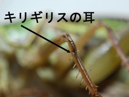 キリギリスの頭、胸、腹のいわゆる胴体部分を調べてみても、そのような器官は見当たりません。そのはずです、キリギリスを始めコオロギの仲間は前脚脛節(人間の脛に当たる部分)に耳の働きをする器官があるからです。この器官は前後に貫通しています。