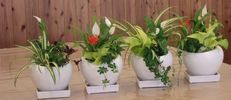 先日、住之江区で開催された「寄せ植え講習会」に、ひとみ社長のお供として行ってきました。ワゴン車に色とりどりの花をいっぱい積みこんで、花の香りを浴びながら、社長と二人でドライブです。会場は木がたっぷりと使われた、とても寛げるいい雰囲気の建物です。 まずは、今回お手伝いをしてくださる地域の方達にむけて、観葉植物を使った寄せ植え講習会です。ひとみ社長の説明の後、実際に作っていくのですが、何度も経験してる方が多いらしく、実にテキパキと綺麗に仕上がります。