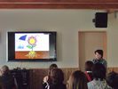 昼食後は地域の方たちに向けた、色とりどりの花を使った寄せ植え講習会です。会場はどんどん人で埋まっていきます。 まずはひとみ社長の授業です。パワーポイントを使って、土壌についての説明です。団粒構造、pH、窒素、燐酸、カリウム、カルシウムイオン・・・専門用語も時々飛び出し、結構アカデミックな内容もずっしりと詰まった話です。