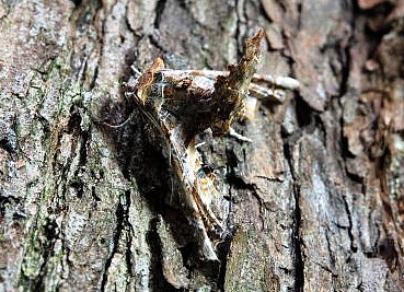 木枯らしの中、木の幹にゴミがくっついているようです。と思ってよく見ると脚らしいものが見えます。