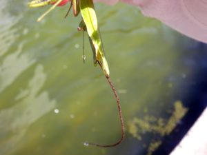 非常に奇怪な生活史を繰り広げるハリガネムシですが、水中の魚たちに大量の餌としてカマキリ、カマドウマやゴミムシなどを提供していることなど、食物連鎖の中で大きな役割を果たしていることも研究されています。